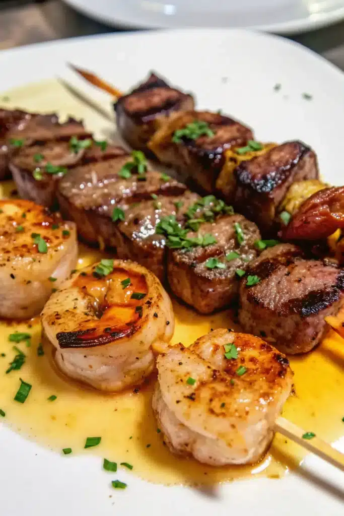Grilled Steak and Shrimp Skewers with Garlic Butter Sauce