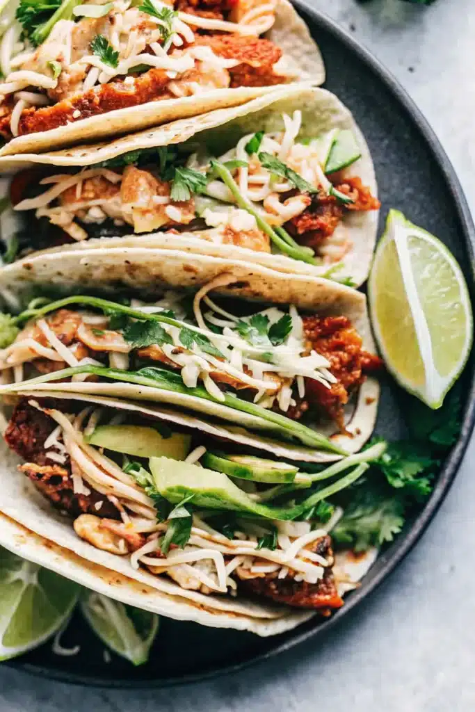 The yogurt-based slaw is tangy and creamy without being heavy, and the fish cooks so fast you’ll wonder why you don’t make these more often. Pro tip: char those tortillas a bit—it makes a huge difference in flavor.